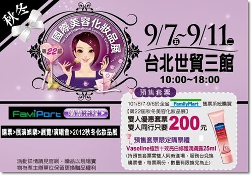 第22屆秋冬國際美容化妝品展即將在9月7日~11日展開了!